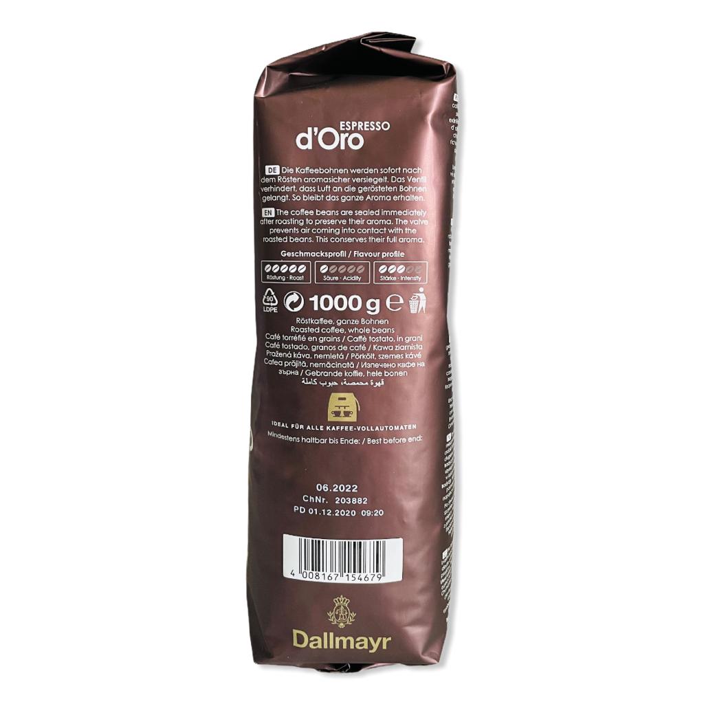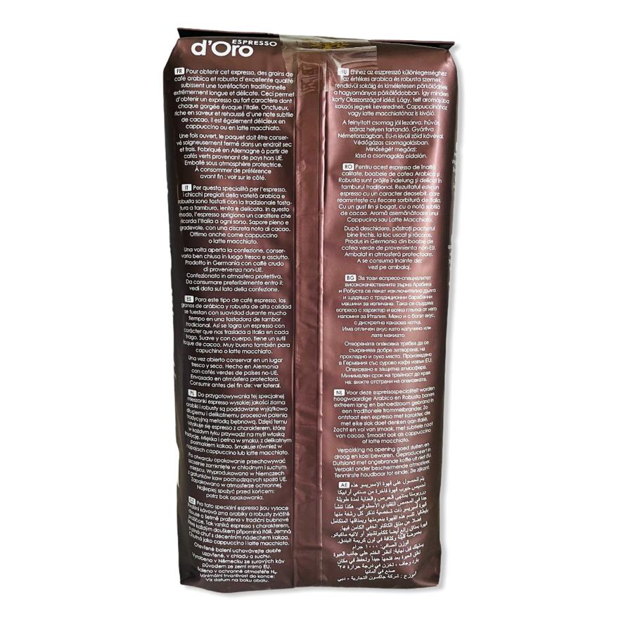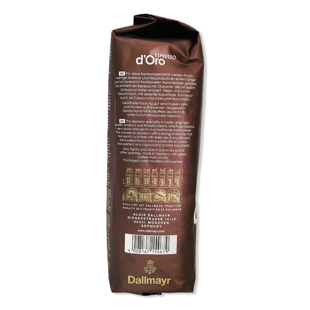 Dallmayr Espresso d'Oro coffee is the ideal composition, characteristic of the most exquisite espresso-type coffees. The beans in this blend come from the best plantations in the world. 80% Arabica beans create excellent taste qualities, matching their subtle flavor and full aroma to the most refined Italian coffees. Particularly careful and slow roasting releases their full flavor and aroma.