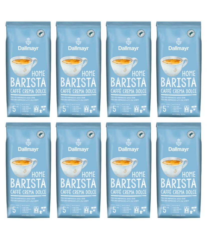 8x Dallmayr Home Barista Dolce 1kg whole bean